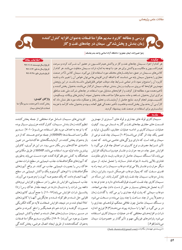 بررسی و مطالعه کاربرد سدیم هگزا متا فسفات به‌عنوان افزایه کنترل‌کننده زمان بندش و پخش‌شدگی سیمان در چاه‌های نفت و گاز