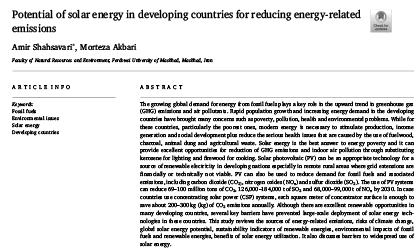 پتانسیل انرژی خورشیدی در کشورهای در حال توسعه برای کاهش انتشار گازهای گلخانه ای
