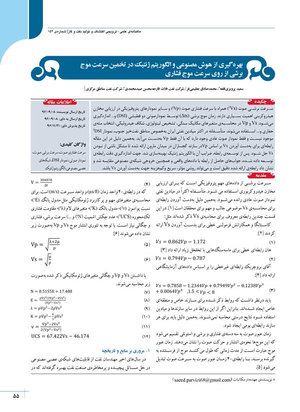 بهرهگیری از هوش مصنوعی و الگوریتم ژنتیک در تخمین سرعت موج برشی از روی سرعت موج فشاری