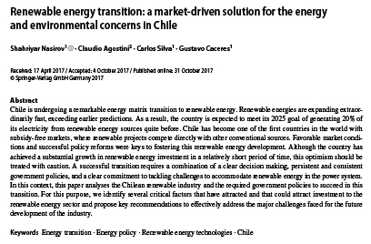 انتقال انرژی های تجدید پذیر: یک راه حل مبتنی بر بازار برای نگرانی انرژی و محیط زیست در شیلی
