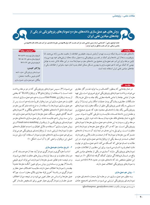 روشهای هم عمق سازی دادههای مغزه و نمودارهای پتروفیزیکی