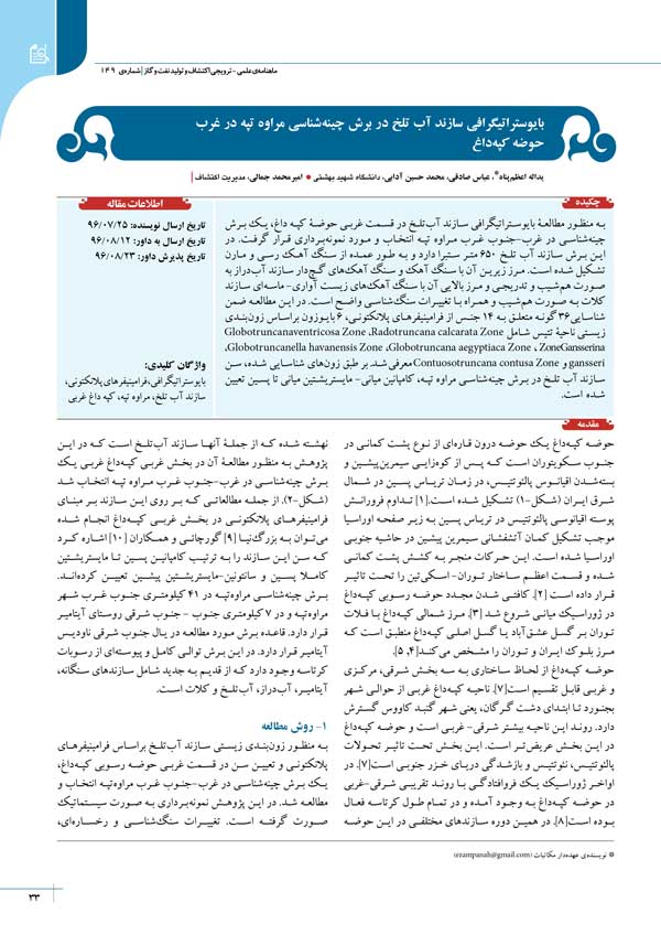 بایوستراتیگرافی سازنده آب تلخ در برش چینه شناسی مراوه تپه در غرب حوضه کپهداغ