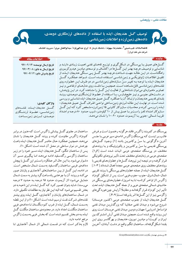 توصیف گسل هندیجان ایذه با اسفاده از دادههای لرزه نگاری دوبعدی دادههای زمین لرزه و اطلاعات زمین شناسی