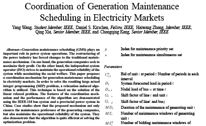 زمان بندی تعمیر و نگهداری واحدهای تولیدی (GMS) نقش مهمی در عملیات های سیستم قدرت ایفا می نماید. بازسازی صنعت برق تغییراتی در مکانیسم تعمیر و نگهداری سنتی ایجاد کرده است. از یک طرف، شرکت های تولیدی برق به دنبال به حداکثر رساندن سودشان هستند. از طرف دیگر، اپراتور مستقل سیستم (ISO) تلاش می کند قابلیت اطمینان عملیاتی سیستم را حفظ نموده و درعین حال رفاه اجتماعی را به حداکثر برساند. این مقاله، مکانیسم هماهنگی برای GMS در بازارهای برق را پیشنهاد می کند. برای حل مسئله برنامه ریزی عدد صحیح مختلط بزرگ حاصله (MIP)، از الگوریتم آزادسازی القایی استفاده می شود. این تکنیک مبتنی بر حل مسئله آزاد شده خطی می باشد. ویژگیهای مکانیسم هماهنگی و عملکرد الگوریتم با استفاده از سیستم باس IEEE-118 و سیستم قدرت استانی در چین شرح داده شده است. مطالعات موردی نشان می دهد که مکانیسم پیشنهادی نه تنها از رجحان یا ارجعیت تعمیر و نگهداری شرکت های تولیدی اطمینان حاصل می کند،بلکه همچنین قابلیت اطمینان عملیاتی سیستم را حفظ می نماید. آنها همچنین توضیح می دهند که الگوریتم در حل مسئله بهینه سازی کاملا کارآمد عمل می کند.