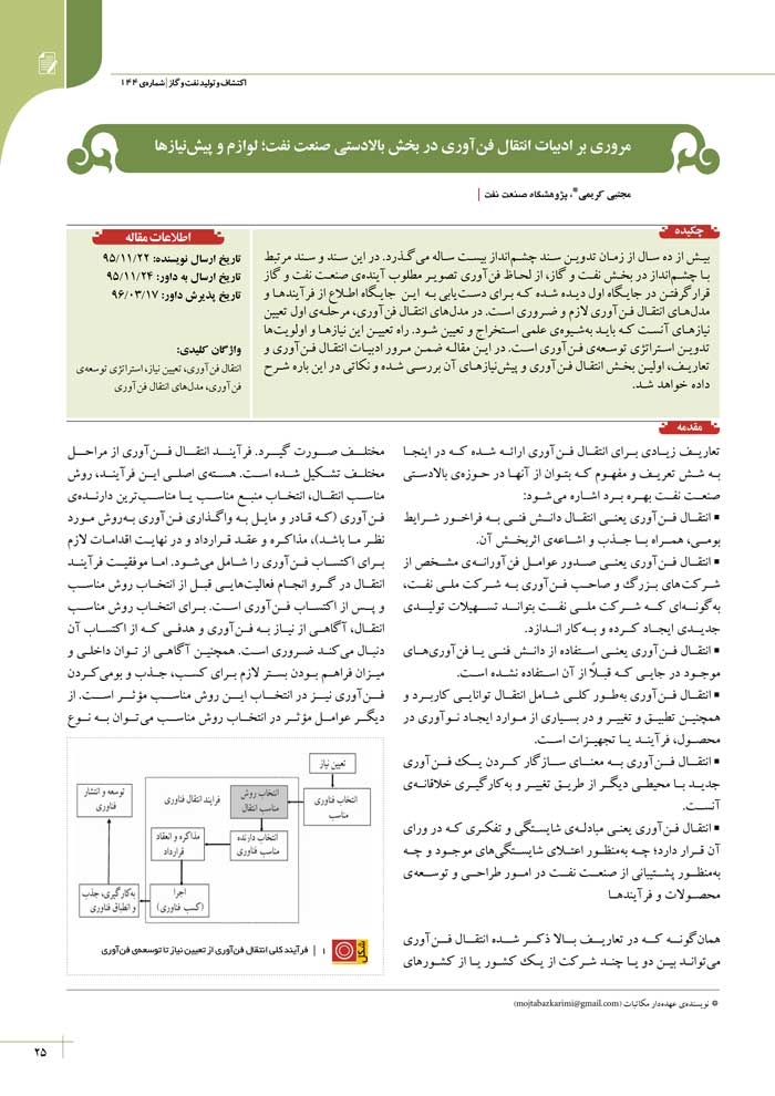 مروری بر ادبیات انتقال فنآوری در بخش بالادستی صنعت نفت؛ لوازم و پیش نیازها