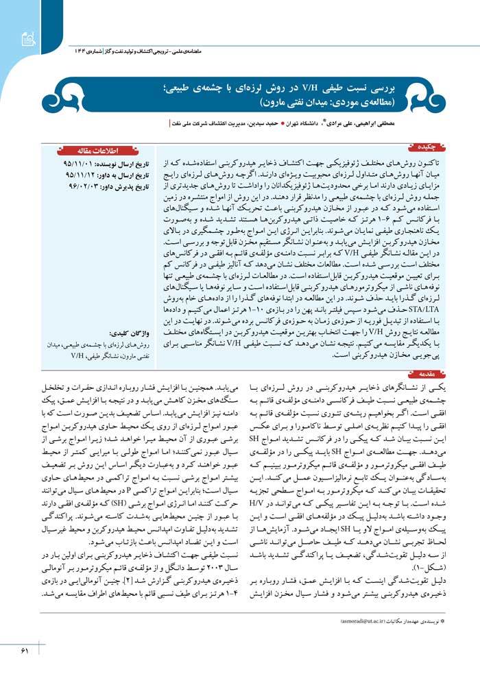 بررسی نسبت طیفی V H در روش لرزهای با چشمهی طبیعی (مطالعهی موردی: میدان نفتی مارون)