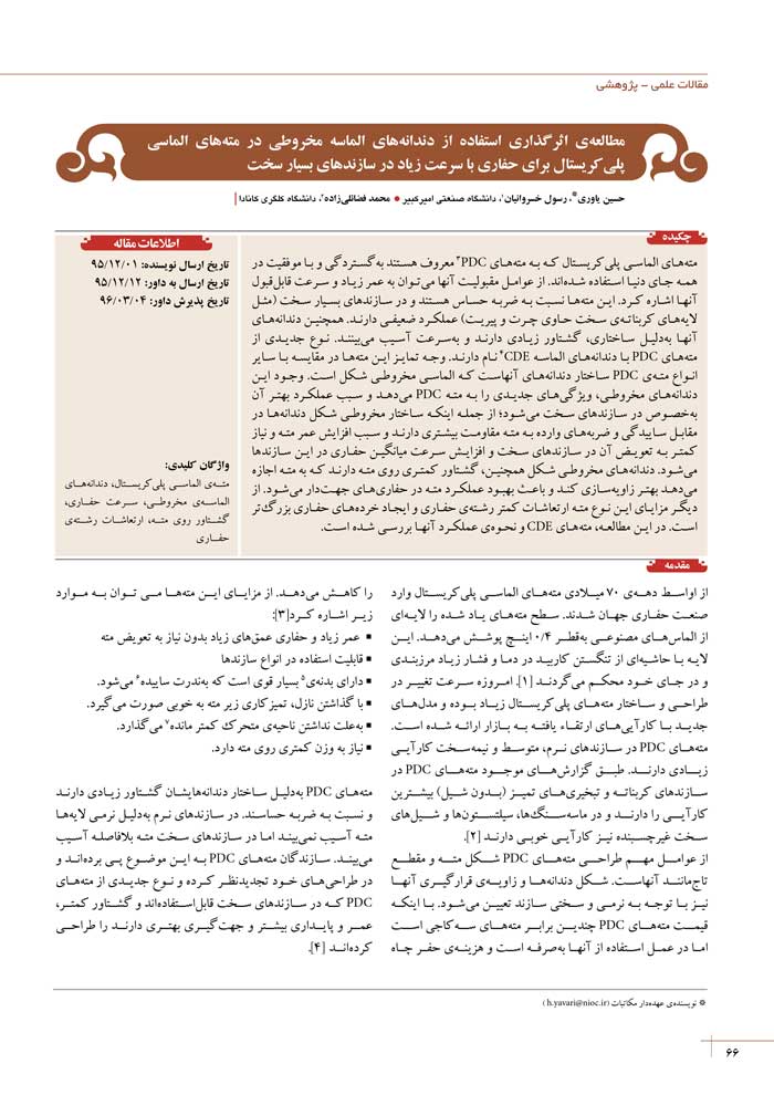 مطالعه اثر گذاری استفاده از دندانههای الماسی مخروطی در متههای الماسی پلیکریستال برای حفاری با سرعت زیاد در سازندهای بسیار سخت