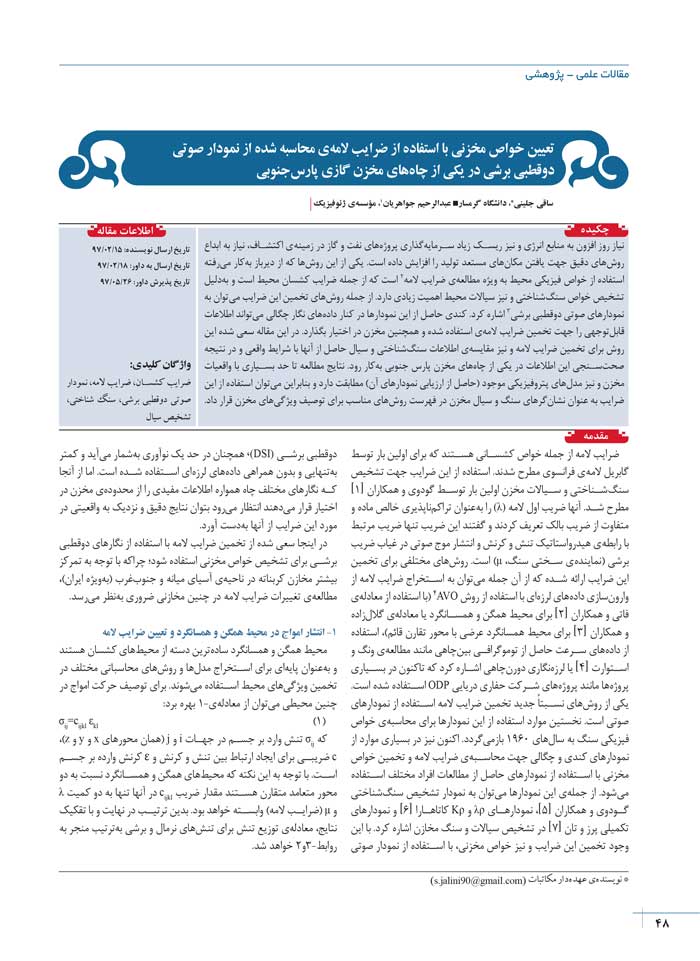 تعیین خواص مخزنی با استفاده از ضرایب لامهی محاسبه شده از نمودار صوتی دوقطبی برشی در یکی از چاههای مخزن گازی پارسجنوبی