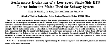 براساس FEM، این مقاله مدل ریاضی جدیدی برای محاسبه و تجزیه وتحلیل HTS LIM مطرح می کند، که ویژگیهای جریان و پدیده پین گذاری شار مغناطیسی ابررسانا را مد نظر قرار می دهد. توزیع چگالی شار مغناطیسی و عملکرد، مثلا نیروی پیشرانه محوری، نیروی عمودی، تلفات جریان گردابی، کارایی و غیره محاسبه می شوند. با مقایسه داده های شبیه سازی و اندازه گیری، این چنین استنباط می شود که مدل ریاضی ارائه شده می تواند به نتایج درستی برای موتور دست یابد. در آینده، مدل ریاضی پیشنهادی، مرحله ای مهم برای فرایندهای بهینه سازی الکترومغناطیسی HTS LIM محسوب خواهد شد.