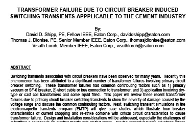 حالات گذرای سوئیچینگ مرتبط با مدارشکن برای سالهای زیادی مد نظر بوده است. به تازگی این پدیده تعداد قابل توجهی از خرابی های ترانسفورماتور منسوب شده است که مرتبط با سوئیچینگ اولیه مدار شکن است. این خرابی های ترانسفورماتور دارای عوامل سهیم مشترک مانند ۱) خلا اولیه یا SF-6 شکن، ۲) کابل کوتاه و یا اتصال به باس به ترانسفورماتور، و ۳) کاربرد مرتبط با ترانسفورماتورهای نوع خشک یا سیم پیچ ریخته گری و برخی از مایع های پر شده. این مقاله. این خرابی های اخیر ترانسفورماتور ناشی از حالات گذرای اولیه مدارشکن را برای نشان دادن شدت آسیب های ناشی از افزایش ولتاژ و بحث در مورد مشترک عوامل موثر بررسی می کند. سپس، شبیه سازی های گذرای سوییچینگ در برنامه حالات گذرا الکترومغناطیسی (EMTP). مطالعات موردی را ارائه خواهد داد که نشان می دهد چگونه ویژگی های مدار شکن جریان و ضربه-مجدد با ویژگی های حیاتی مدار بحرانی ترکیب و موجب خرابی ترانسفورماتور می شود. طراحی و نصب و راه اندازی ملاحظات عنوان خواهد شد، به ویژه چالش های بازسازی یک کمک فنر برای یک مرکز موجود با فضای محدود. برای صنعت سیمان، شرایطی که در آن حالات گذرای سوئیچینگ ناشی از مدار شکن به احتمال زیاد به آسیب ترانسفورماتور منجر می شود. بحث خواهد شد. در نهایت، چند تکنیک و تجهیزات ثابت شده برای کاهش موفق حالات سوییچینگ گذرای مدار شکن خواهد شد از جمله برقگیرها، افزایش خازن ها، کمک فنرها و ترکیب این موارد ارائه خواهد شد.
