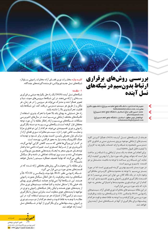 بررسی روشهای برقراری ارتباط بدونسیم در شبکه های نسل آینده