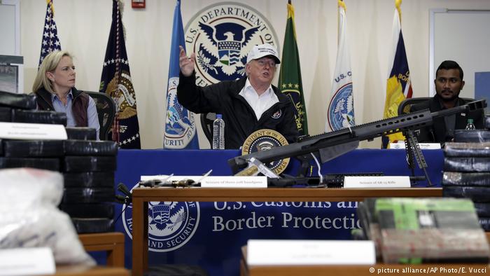 در هنگام این سخنان روی میز مقابل دونالد ترامپ مواد مخدر، سلاح و کیسهای پلاستیکی پر از پول چیده شده بود تا نشان داده شود چه اقلامی در مرز توقیف میشود.