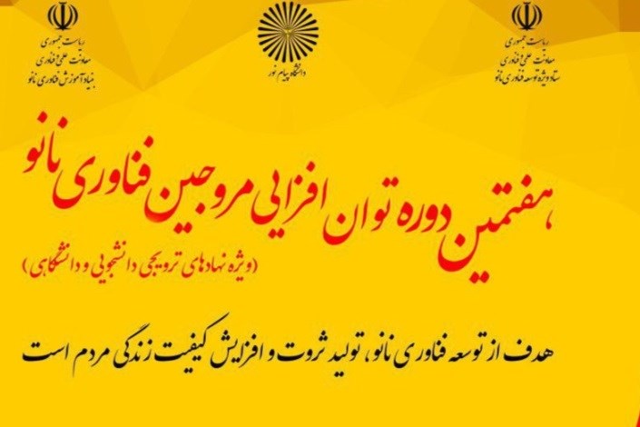 بنیاد آموزش فناوری نانو ستاد توسعه فناوری نانو معاونت علمی و معاونت فرهنگی، اجتماعی و دانشجویی دانشگاه پیام نور میزبان بیش از 100 نهاد ترویجی فعال در حوزه فناوری نانو خواهند بود. سازمان مرکزی دانشگاه پیام نور میزبان هفتمین دوره توانافزایی مروجان فناوری نانو است. این دوره از سوم تا پنجم بهمنماه 97 با حضور نهادهای ترویجی نانو برگزار میشود.