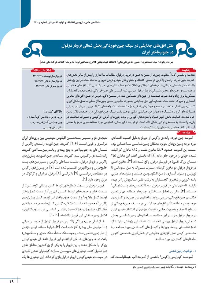 نقش افقهای جدایشی در سبک چینخوردگی بخش شمالی فروبار دزفول در جنوبباختر ایران
