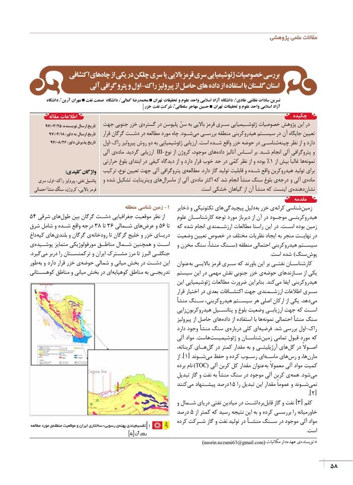 بررسی خصوصیات ژئوشیمیایی سری قرمز بالایی یا سری چلکن در یکی از چاه های اکتشافی استان گلستان با استفاده از داده های حاصل از پیرولیز راک-اول و پترو گرافی آلی