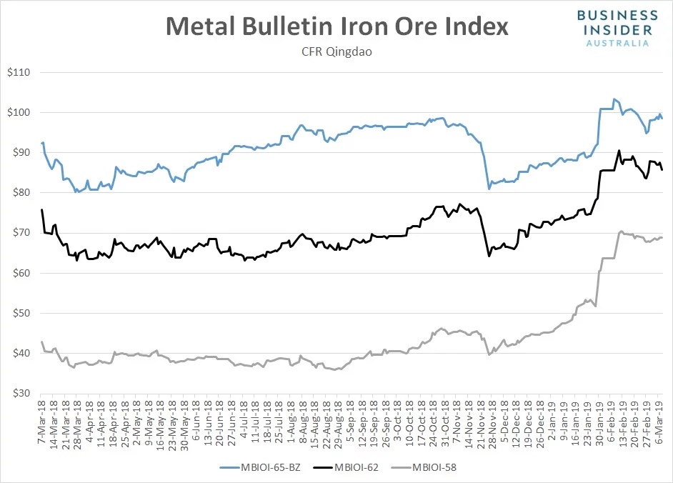 قیمت سنگ آهن فاین 65 درصد برزیل در روز جمعه با 1.1 درصد کاهش 98 دلار و 60 سنت شد و درمقابل قیمت فاین عیار 58 درصد به بالاترین سطح رسیده و 68 دلار و 88 سنت شده که 0.3 درصد از روز پنجشنبه بیشتر است.