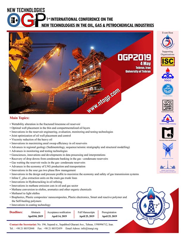نخستین کنفرانس بین‌المللی فناوری‌های نو در صنایع نفت، گاز و پتروشیمی از سوی انجمن مهندسی گاز ایران و با مشارکت و همکاری دانشگاه تهران برگزار می‌شود.
