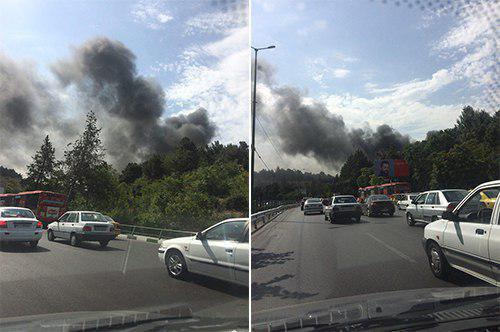 در اثر آتش سوزی در داخل نمایشگاه بین المللی دود غلیظی در بزرگراه چمران و خیابانهای اطراف پخش شده است.