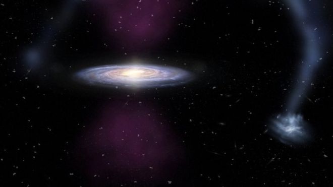 این جریان گاز و غبار به طور متوسط ۲۰۰ هزار سال نوری از راه شیری فاصله دارد.