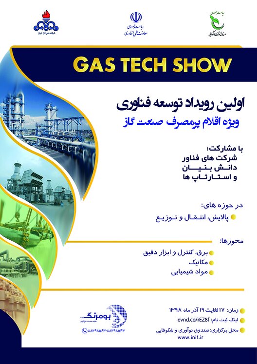زمان برگزاری نخستین رویداد توسعه فناوری ویژه اقلام پرمصرف صنعت گاز روزهای یکشنبه ۱۷ آذرماه لغایت سهشنبه ۱۹ آذرماه در ساختمان صندوق نوآوری و شکوفایی ریاستجمهوری اعلام شده است.