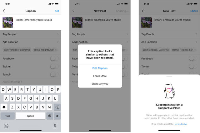 اینستاگرام یک ویژگی جدید را معرفی میکند که با استفاده از هوش مصنوعی در صورت شناسایی متنهای زیر عکسی(کپشن) که مشابه آنهایی است که قبلا توهین آمیز بودن آنها گزارش شده است، به کاربر هشدار میدهد که کپشن شما ممکن است توهین آمیز باشد.