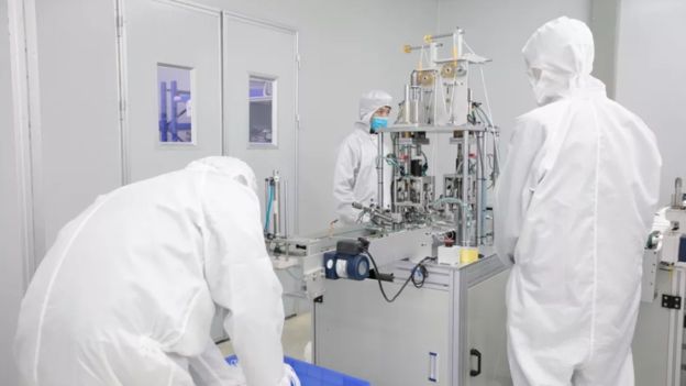 این شرکت گفته است تولید آزمایشی ماسکهای پزشکی را در کارخانه واقع در شنزن در جنوب چین آغاز کرده است.