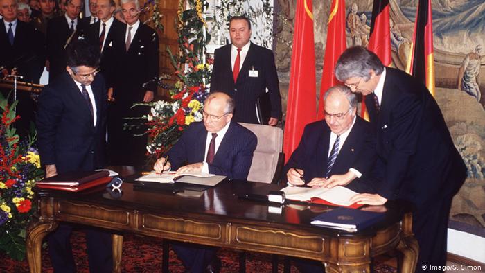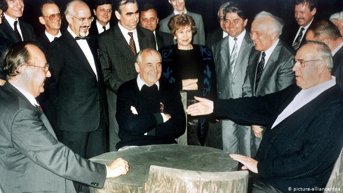 گورباچف وحدت آلمان را تایید کرد پانزدهم و شانزدهم ژوئیه سال ۱۹۹۰: موضوع عضویت آلمان واحد در ناتو یکی از مهمترین دغدغههای اتحاد شوروی بود. ناتو حاضر شد بر نقش دفاعی آلمان تاکید کند و به این ترتیب میخائیل گورباچُف، آخرین رهبر اتحاد جماهیر شوروی در قفقاز موافقت خود را با عضویت آلمان متحد در ناتو آعلام کرد.