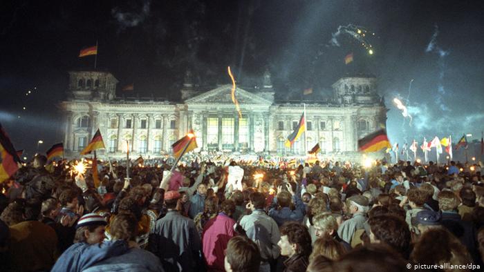 روز وحدت دوآلمان سوم اکتبر سال ۱۹۹۰: وزرای خارجه قدرتهای پیروز در جنگ جهانی دوم به همراه فرماندهان برلین غربی از کلیه امتیازات خود در ارتباط با آلمان چشمپوشی کردند. مجلس نمایندگان جمهوری دمکراتیک آلمان برای آخرینبار تشکیل جلسه داده و به عضویت این کشور در پیمان ورشو پایان داد. راس ساعت ۱۲ شب پرچم آلمان واحد بر سردر مجلس نمایندگان در برلین به اهتزاز درآمد. دومیلیون نفر در این مراسم شرکت کردند.