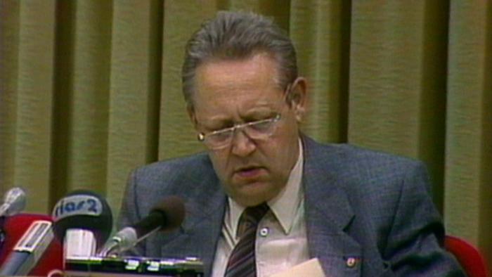 هانس مودرو به عنوان رئیس جدید شورای وزیران سیزدهم نوامبر سال ۱۹۸۹: هانس مودرو مسئولیت نجات آنچه هنوز از آلمان دمکراتیک باقی مانده بود را بر عهده گرفت. کمیته خلق این کشور چهارروز پس از سقوط دیوار برلین، هانس مودرو را به عنوان رئیس شورای وزیران انتخاب کرد. مودرو در راس “حزب متحد سوسیالیستی آلمان” یعنی حزب حاکم در آلمان شرقی قرار گرفت؛ حزب پرقدرتی که اعضایش دیگر حاضر به اطاعت بیچون و چرا نبودند.