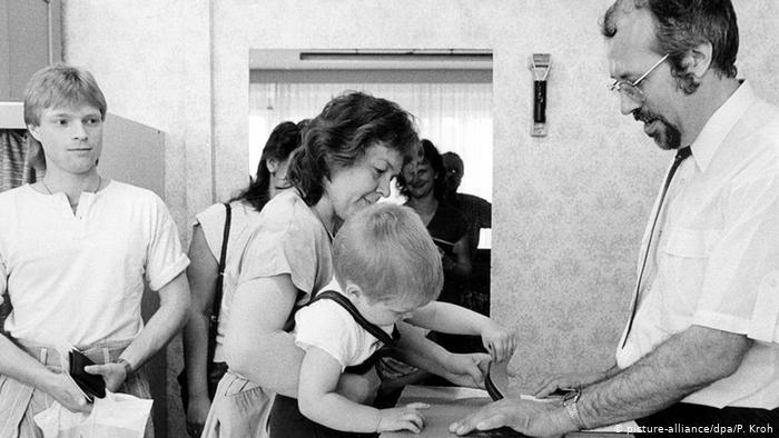 انتخابات آزاد هجدهم مارس ۱۹۹۰ انتخابات آزاد در جمهوری دمکراتیک آلمان برگزار شد. هلموت کهل، صدراعظم پیشین آلمان، به شدت برای شرکت مردم در این انتخابات تبلیغ کرد. او حدود یک میلیون نفر را به پای صندوقهای رای کشاند. حزب دمکرات مسیحی آلمان و گروههای همپیمانش در این انتخابات بر حزب سوسیال دمکرات این کشور پیروز شد.