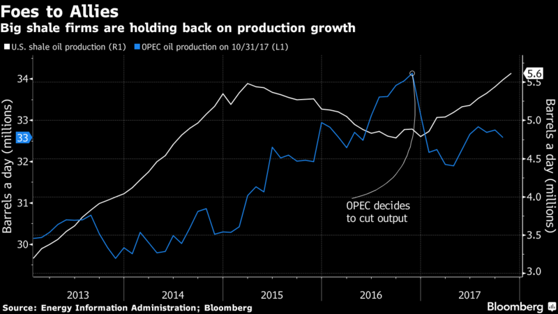 بلومبرگ می‌گوید انتظار نداشته باشید شکاف ایجاد شده در بازار نفت از سوی اوپک به سرعت از سوی شرکت‌های بزرگ تولیدکننده نفت شیل پر شود.