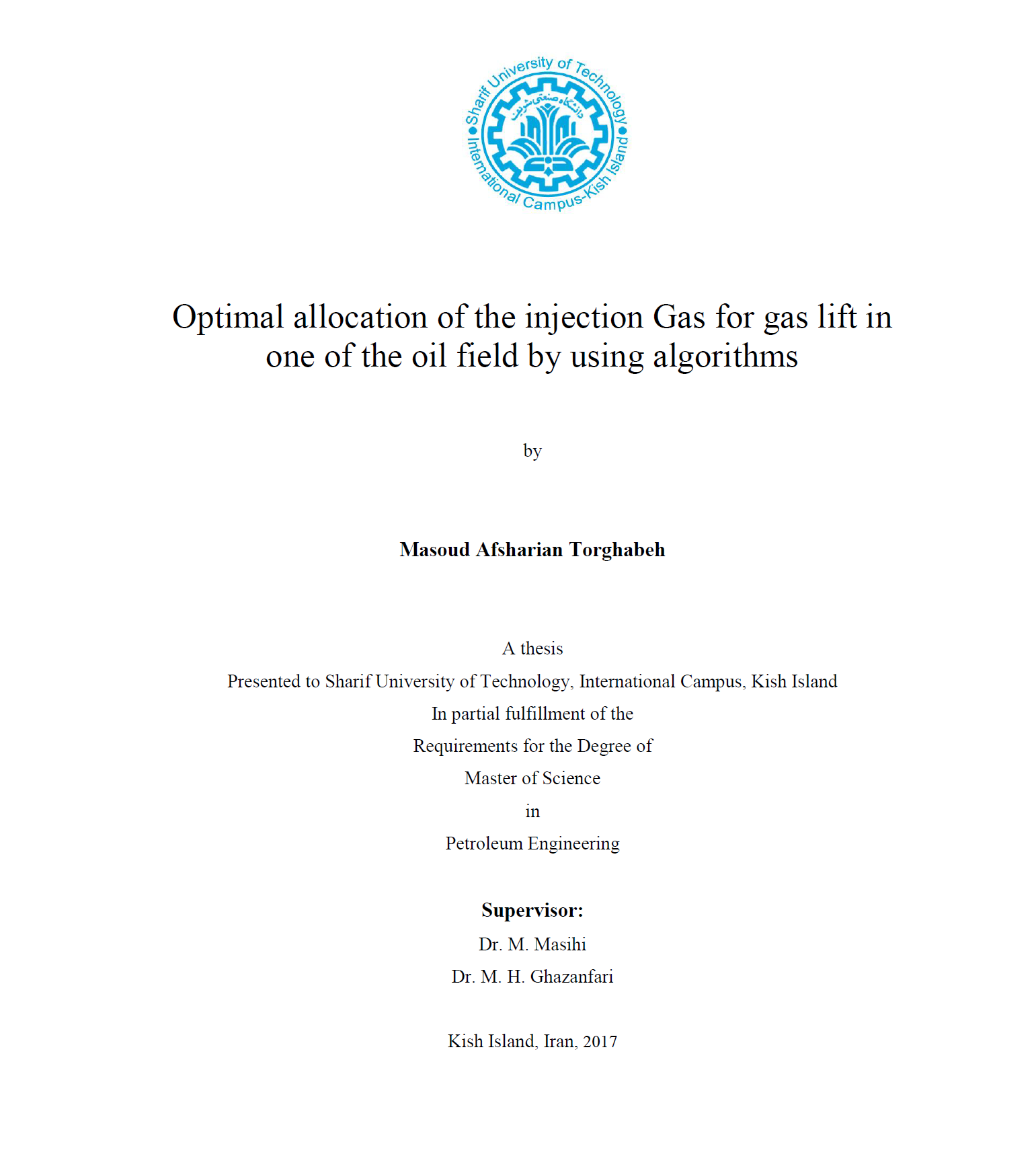 « اختصاص بهینه ی میزان گاز تزریق برای فراز آوری با گاز در یکی از میادین نفتی با استفاده از الگوریتم» پایان نامه ایست که در دانشگاه شریف ارائه شده است.