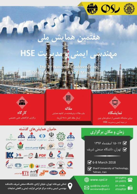 هفتمین همایش ملی مهندسی ایمنی و مدیریت HSE (سلامت، ایمنی و محیط زیست)، 15 تا 17 اسفندماه سال جاری در دانشگاه صنعتی شریف برگزار میشود.