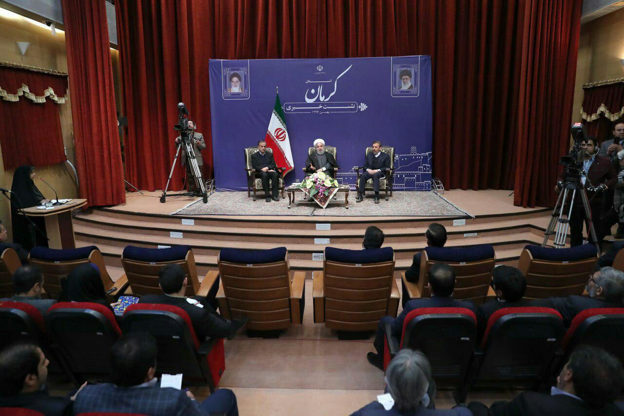 روحانی با بیان اینکه روز گذشته عملیات راه آهن سیرجان کرمان آغاز شد و امیدواریم تا پایان دولت این طرح اجرایی و عملیاتی شود، تصریح کرد: انتقال آب از جنوب به کرمان از دیگر طرح ها بود و امیدواریم آب به سیرجان تا پایان دولت دوازدهم برسد، همچنین طرح های گردشگری مربوط به پارک گردشگری ملی امیدواریم هر چه سریعتر اجرایی شود.