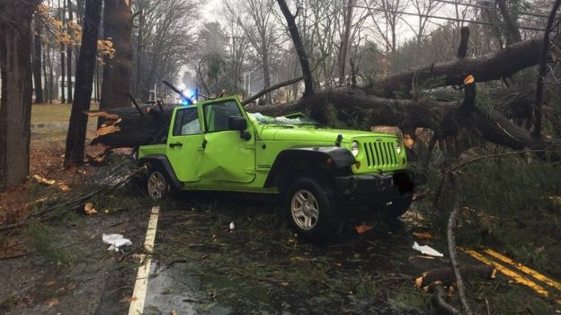 هزاران پرواز و برنامه تردد قطارها به علت تندبادهایی که با بیش از ۱۱۰ کیلومتر در سواحل شمالشرقی آمریکا وزیدن گرفته لغو شدهاند و سقوط درختان و دکلهای برق بیش از یک میلیون نفر را در بیبرقی گذاشته است.