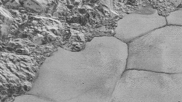 محققان عکسهای کاوشگر از منطقهای در پلوتو به نام فلات اسپوتنیک را بررسی کردند و متوجه شدند بخشی از این فلات را تلهایی از متان منجمد -شبیه تلماسهای که در کره زمین دیده می شود- پوشانده است.