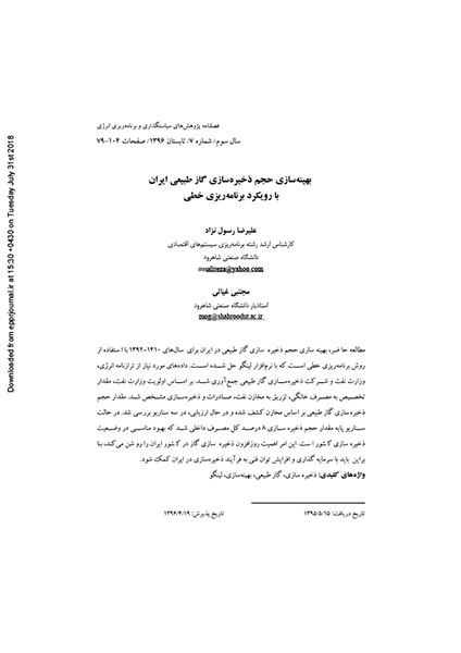 بهینهسازی حجم ذخیرهسازی گاز طبیعی ایران با رویکرد برنامهریزی خطی