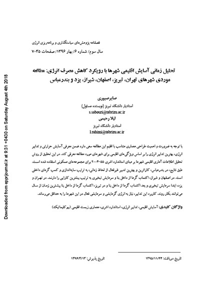 تحلیل زمانی آسایش اقلیمی شهرها با رویکرد کاهش مصرف انرژی: مطالعه موردی شهرهای تهران، تبریز، اصفهان، شیراز، یزد و بندرعباس