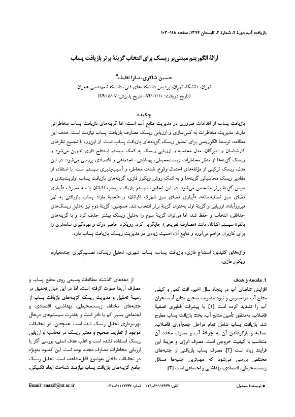 ارائة الگوریتم مبتنی بر ریسک برای انتخاب گزینة برتر بازیافت پساب