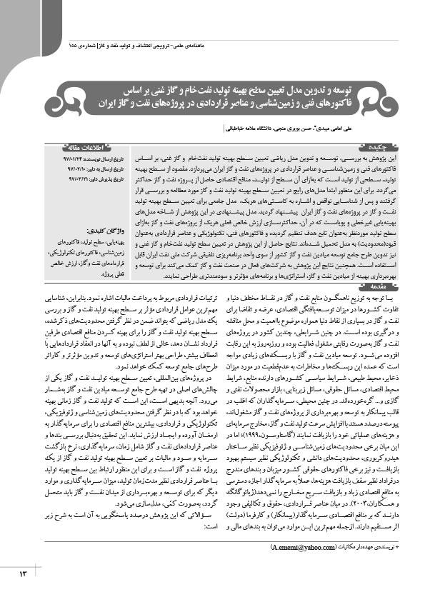 توسعه و تدوین مدل تعیین سطح بهینه تولید نفت خام و گاز غنی بر اساس فاکتورهای فنی و زمین شناسی و عناصر قراردادی در پروژه های نفت و گاز ایران