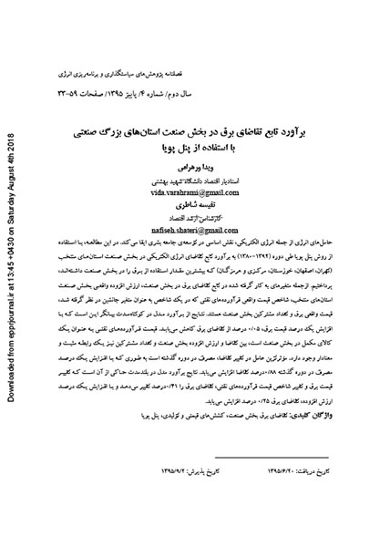 برآورد تابع تقاضای برق در بخش صنعت استانهای بزرگ صنعتی با استفاده از پنل پویا