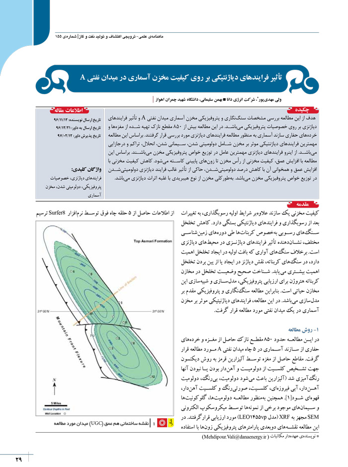 تأثیر فرایندهای دیاژنتیکی بر روی کیفیت مخزن آسماری در میدان نفتی A