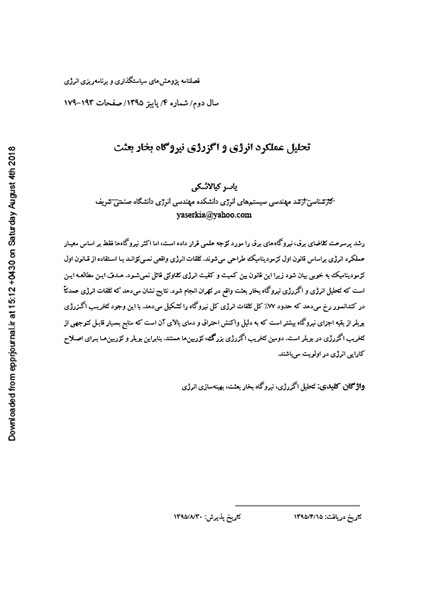 رشد پرسرعت تقاضای برق، نیروگاههای برق را مورد توجه علمی قرار داده است، اما اکثر نیروگاهها فقط بر اساس معیار عملکرد انرژی براساس قانون اول ترمودینامیک طراحی میشوند.