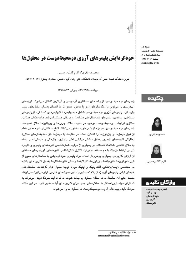 خودگردایش پلیمرهای آزوی دو محیط دوست در محلولها