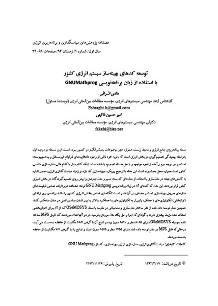 توسعه کدهای بهینهساز سیستم انرژی کشور با استفاده از زبان برنامهنویسی GNUMathprog