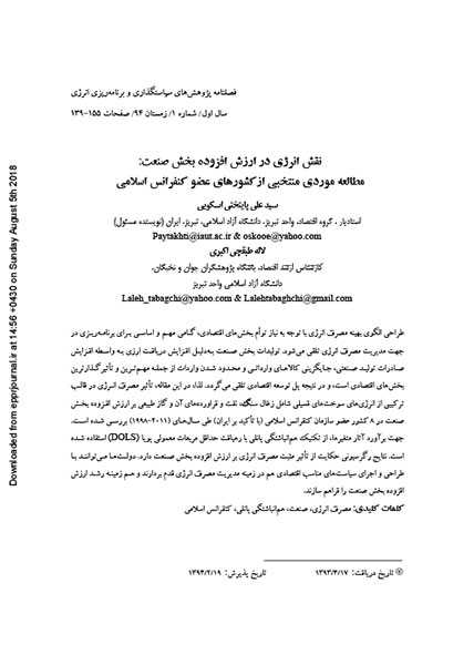 نقش انرژی در ارزش افزوده بخش صنعت: مطالعه موردی منتخبی ازکشورهای عضو کنفرانس اسلامی
