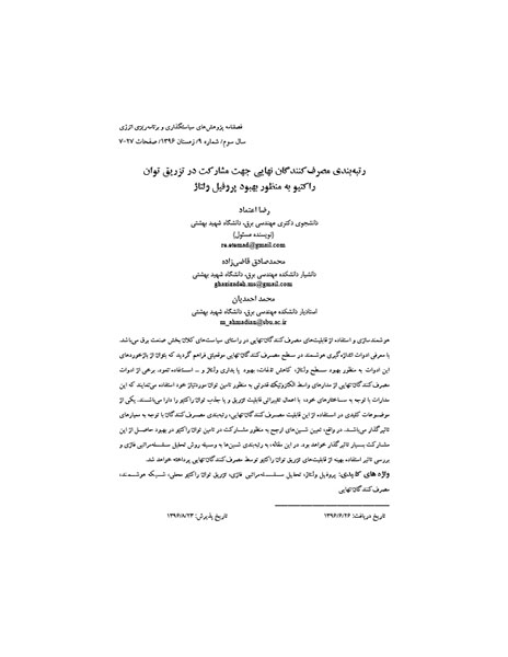 رتبهبندی مصرفکنندگان نهایی جهت مشارکت در تزریق توان راکتیو به منظور بهبود پروفیل ولتاژ