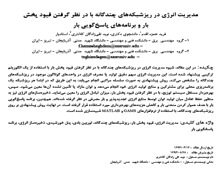 مدیریت انرژی در ریزشبکههای چندگانه با در نظر گرفتن قیود پخش بار و پاسخگویی بار