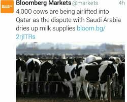 وقوع بحران در روابط قطر با همسایگان عربش، یک تاجر قطری را واداشته تا برای مقابله با تحریمهای کشورهای عربی و پر کردن خلاء ایجاد شده در بازار لبنیات کشورش، ۴ هزار راس گاو را با هواپیما به صحرای قطر منتقل کند.