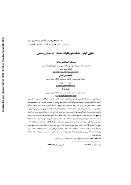 تحلیل کیفیت سامانه فتوولتاییک منعطف در سطوح منحنی